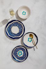 24 Parça 6 Kişilik Yemek Takımı, sofralarınıza modern sanat dokunuşu katıyor. Cesur desenleri, lacivert ve turkuazın enerjik uyumu ile birleşerek sofranızı sıradanlıktan çıkarıyor. Hem günlük kullanıma hem de misafir sofralarına şıklık katan bu set, tasarımıyla fark yaratmak isteyenler için ideal.